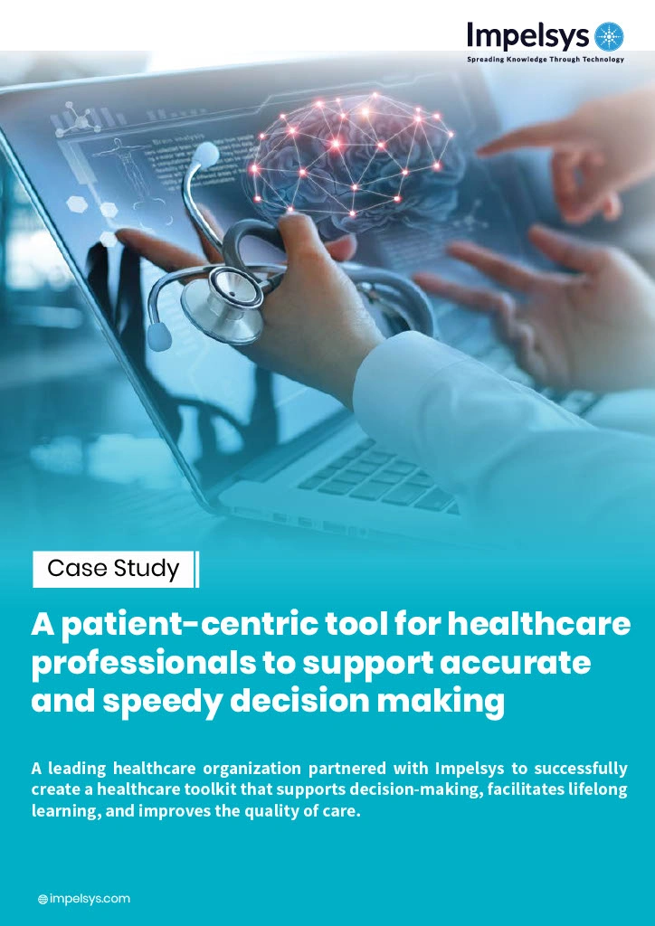 Impelsys developed a comprehensive point-of-care solution that integrated nursing calculators and healthcare toolkits, enabling healthcare professionals to make more accurate decisions while administering treatment. The tool also provided relevant advice, actions, and recommendations based on patients and conditions and streamlined the user experience and administration across all their offerings.