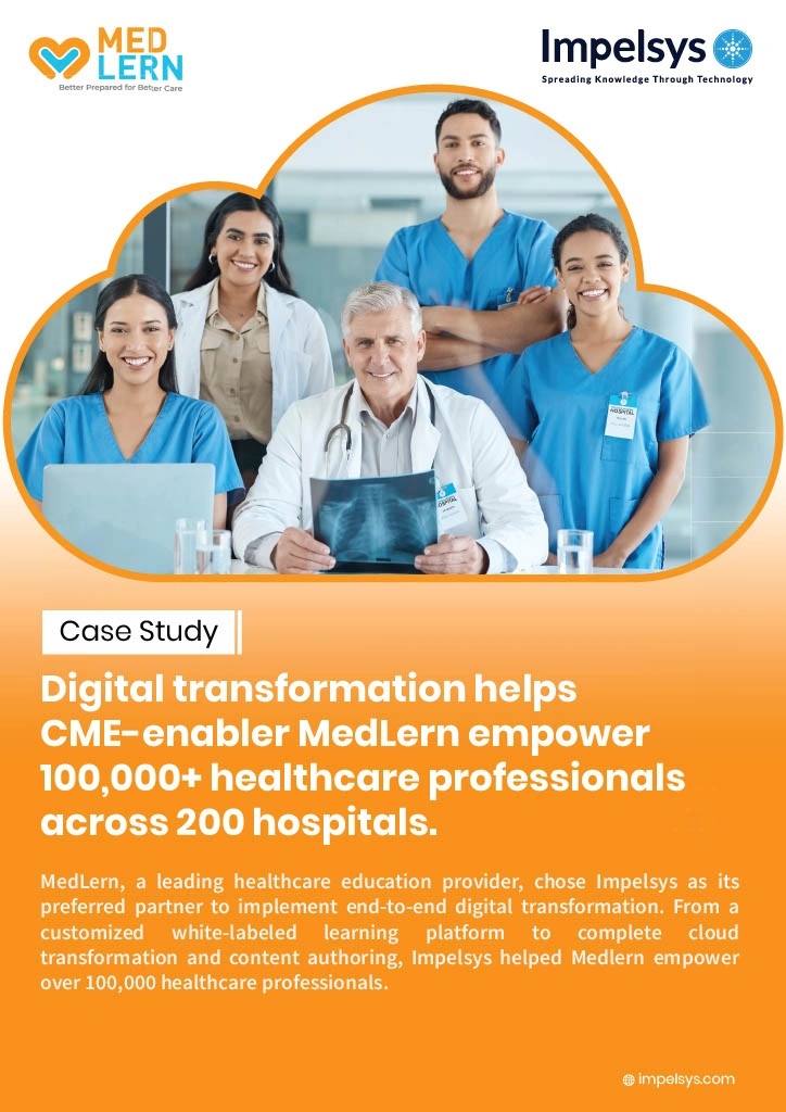 Impelsys’ digital transformation solution helped MedLern empower over 100,000 healthcare professionals across 200 hospitals and 50 educational institutions. Impelsys’ content authoring services led to the development of nearly 500 courseware modules, ultimately improving healthcare outcomes.