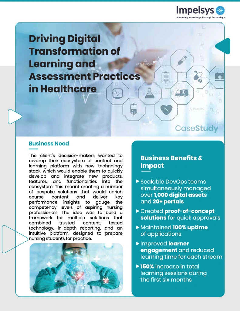Impelsys undertook a full-scale application modernization of the client’s services and expanded its capabilities. The client benefited with the application modernization from being enabled to provide an enhanced user experience from enrolment to certification, a microservices architecture for the quick development of new features, a significant increase in operational efficiency, cost reduction, and seamless integration of the solution without impacting existing functions.