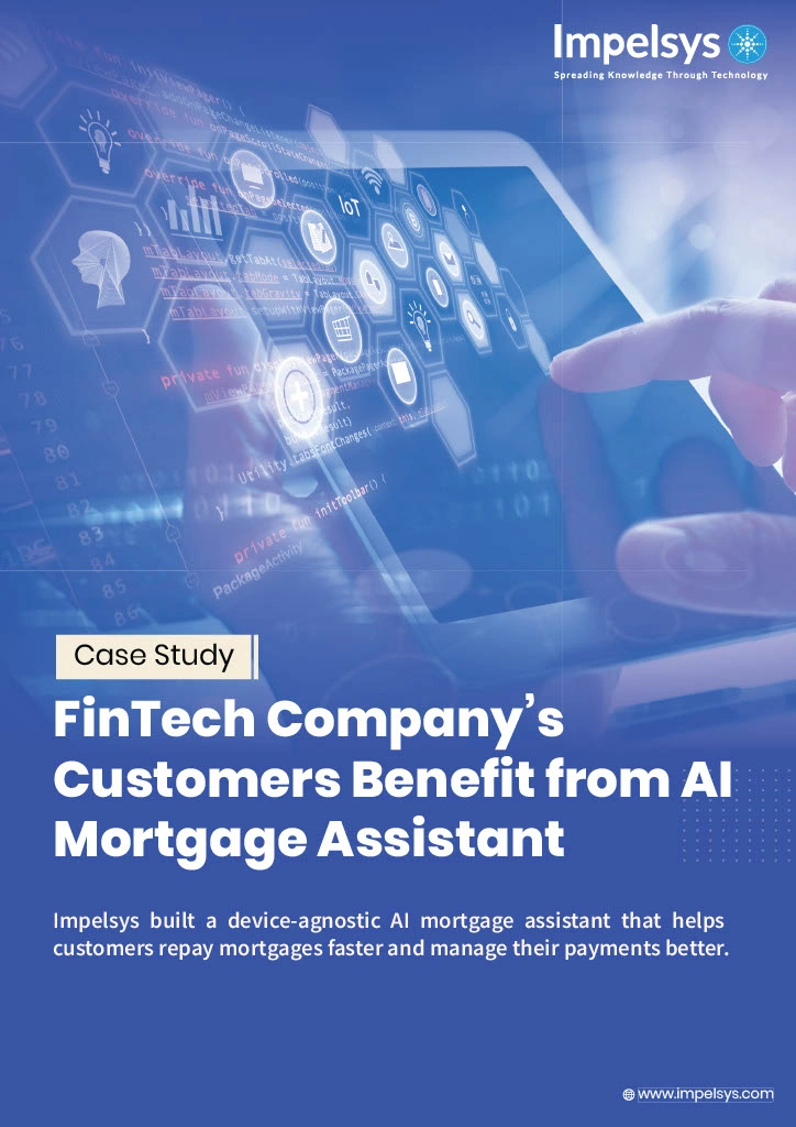 Impelsys designed and implemented a mobile AI solution available on iOS and Android to track and optimize mortgage repayment methods. The solution with user-friendly dashboards provided e-Wallet and analytics-based recommendations.